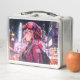 ■アニメやイラスト好きにぴったりのブリキ板製バッグ(ランチボックス) ■ピクニックのおやつを入れたり、大切な収集アイテムを入れたり、宝箱にしたり!かわいいメタルバッグの使い方はあなた次第 ■ピンクの装いに包まれたカワイイ女の子のアニメ風AIイラスト。機械好きらしいメカニカルなゴーグルとヘッドホンそしてリュックを背負って、ネオンライトの輝く都市を探検中 ■VACHABORG AIイラスト「ピンクメカニカルガールの探検」グッズ
