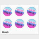 08.08 venta pegatina redondo con gradiente holográfico brillante, color rosa brillante y fuente punteada negra