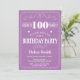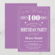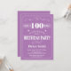 100.ª invitación de cumpleaños morado y blanco