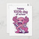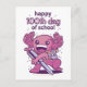 Diseño lindo con un axolotl usando una mochila y sosteniendo un gran bolígrafo con la cita "Feliz 100 día de clases". Feliz 100 días de colegio o Feliz 100 día de kindergarten.