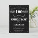 Cartel de invitaciones al cumpleaños número 100. Fondo blanco y negro. Cumpleaños de adultos. Cumpleaños de hombres o mujeres. Invite a un niño o a una Chica. 13.º 15.º 16.º 18.º 20.21.30.40.50.60.70.80.90.100. Cualquier edad. Para una mayor personalización, haga clic en el botón "Personalizar" y utilice nuestra herramienta de diseño para modificar esta plantilla.