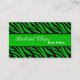 Esta tarjeta de 100 2x3.5 de diseño de impresión eléctrica Lime Green Black Zebra Print Pattern es perfecta para cualquier negocio y es completamente personalizable. Se imprime en un material de tarjeta blanca mate de 88 libras con impresión a dos caras a todo color. 100 cartas por cada QTY de 1.
