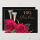 Los rosas rojos y las tazas de champán elegantes diseñan las 100as invitaciones de la celebración del cumpleaños. Modifique el nombre, la fecha y todos los detalles para requisitos particulares de sus invitaciones. Tarjetas a juego, sellos y otros productos disponibles en la categoría de las invitaciones del cumpleaños/de la fiesta de cumpleaños de nuestra tienda.