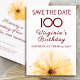 Celebrate an incredible century with this elegant floral Save the Date card. Featuring a soft yellow watercolor bloom and a refined, modern layout, it’s perfect for garden parties or sophisticated milestone gatherings. Fully customizable with your details. Enjoy!