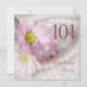 Una hermosa y delicada imagen de margaritas en suaves tonos rosas. En el fondo hay una cadena de perlas. El conjunto es suave y anticuado. Una encantadora invitación a la fiesta de cumpleaños número 101. Cambiar la espalda a los detalles de su propio fiesta