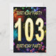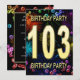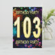 Agregue un nombre al personalizar para esta invitación de grupo única. Invitación a la fiesta de 103 años con fuegos artificiales y burbujas. Añade tus detalles al interior para crear una invitación de diversión perfecta. Enciende el cielo con estos gloriosos fuegos artificiales. Una invitación a una fiesta de cumpleaños que tiene estilo y mucha diversión.