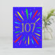 Invitación a la fiesta de cumpleaños número 107. Añade un nombre y tus detalles para hacer una fantástica invitación de fiesta de cumpleaños. ¡Una invitación a un fiesta explosivo! Qué manera maravillosa de enviar invitaciones a fiestas. Las palabras 'Tiempo Fiesta' en colores brillantes con una explosión de colores brillantes y estrellas.