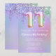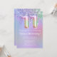 purpurina color rosa morado invitado a una fiesta de cumpleaños número 11, deja caer la invitación a una fiesta de cumpleaños para un chica de 11 años con escritura moderna y divertidos globos de Relieve metalizado.