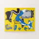 Un puzzle fácil (¡para los adultos!) con amigos animales de los bosques en tonos azules y grises sobre un fondo amarillo vibrante. Este es un rompecabezas divertido con piezas sobredimensionadas para niños pequeños que aprenden a vivir con la forma más común de ceguera de color. Pueden jugar sin sentir que están en desventaja, y al mismo tiempo fortalecer las habilidades para reconocer la forma y el patrón.