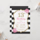 13.ª Invitación de cumpleaños. Negro rosa y oro. Brillantina dorada. Rayas blancas y negras. Flor Floral Rosa. Cumpleaños de niños. Fiesta de cumpleaños de la chica Lady Adolescente. Para una mayor personalización, haga clic en el botón "Personalizar" y utilice nuestra herramienta de diseño para modificar esta plantilla.