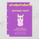 13.ª tarjeta de invitación de fiesta de cumpleaños. La tarjeta de cumpleaños tiene una llama rosa sobre fondo ultra violeta. Hay un patrón estelar en la parte trasera. El texto está listo para ser personalizado. Palabra llama significa varias cosas.