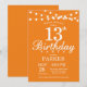 Invitación a los 13 años con String Lights. Antecedentes de naranja. Cumpleaños de niños. Chico o Chica Lady Bday Invite. 13.º 15.º 16.º 18.º 20.21.30.40.50.60.70.80.90.100, cualquier edad. Para una mayor personalización, haga clic en el botón "Personalizar" y utilice nuestra herramienta de diseño para modificar esta plantilla.