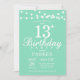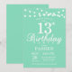 Invitación a los 13 años con String Lights. Fondo Verde Mint.Cumpleaños de niños. Chico o Chica Lady Bday Invite. 13. 15. 16. 18. 20. 21. 30. 40. 50. 60. 70. 80. 90. 100. Cualquier edad. Para más personalización, haga clic en el botón "Personalizar" y utilice nuestra herramienta de diseño para modificar esta plantilla.