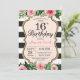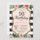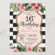 Invitación de cumpleaños 16 para adolescente, señora. Dulce Dieciséis. Invitación a la fiesta de cumpleaños negro y oro.Brillantina dorada. Flor floral color agua rosa. Bandas blancas y negras. Digital Imprimible.