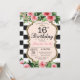 16ª Invitación de cumpleaños. Negro dorado rosa fl