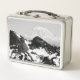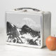 Fotografía en blanco y negro del monte Rainier con una cordillera accidentada en primer plano. Derechos reservados ©2023 Kimberly J Tilley. zazzle.com/store/developingnature