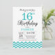 16.ª invitación de cumpleaños Chevron Verde azulad