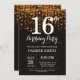 16.ª invitación de cumpleaños Purpurina de oro