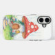 Agrega un toque de magia a tu teléfono con esta funda para iPhone de una adorable casa de hongos. Con un encantador diseño de cottage de hadas, esta obra de arte muestra un pequeño hogar acogedor bajo un techo de hongo rojo, rodeado de flores y suave lluvia, creando una atmósfera soñadora y pacífica.