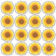 Un conjunto de 16 pegatinas de girasol amarillas y naranjas con forma de beso y centro claro. Estas pegatinas de flores de girasol amarillas son ideales para decorar bodas, fiestas de despedida de soltera y más.