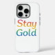 Mantén tu iPhone elegante e inspirado con este colorido estuche para iPhone "Stay Gold". Con la icónica frase en los vivos colores del arcoiris, este funda le alegrará el día. No sólo protege tu teléfono de los arañazos y caídas, sino que también refleja tu personalidad.