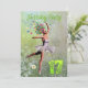 Un hermoso hada floral de bailarina bailando en una invitación de cumpleaños. La bailarina lleva un tutu blanco y tiene rastros de flores que provienen de su pelo. Ella está bailando a través de un prado lleno de margaritas.