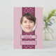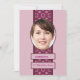17.ª invitación a la fiesta de cumpleaños. Una invitación muy elegante para una fiesta de cumpleaños que es apropiada para un hombre o una mujer. Un borde con estampado rosa inicia la imagen de la persona de cumpleaños. Añade su nombre bajo la imagen y tienes una invitación muy única.