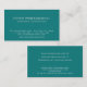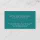 Esta elegante tarjeta de presentación muestra sus informaciones de forma limpia y profesional utilizando una fuente blanca moderna sobre un fondo turquesa oscuro. Este diseño es adecuado para todos los propósitos. Las tarjetas de visita son una gran herramienta de marketing para los empresarios y pequeños empresarios para promover sus servicios o productos en muchos campos de actividad como educación, consultoría, finanzas, seguros, bienes raíces, salud, belleza, fitness, estilo de vida, auto, TI, computadoras y muchos más. En esta moderna y elegante tarjeta de visita el nombre y las líneas de información empresarial se acentúan con una sutil sombra. Puede elegir su propio fondo o color de fuente y también puede cambiar el color de la sombra personalizando el diseño con las herramientas de diseño de Zazzles. Personalizar el texto en la parte posterior de la tarjeta para informar a los clientes y socios comerciales sobre su servicio o productos o eliminar campos de texto que no necesite. Si esta tarjeta de visita está destinada para uso privado, es posible que no desee entregar demasiadas informaciones para proteger su seguridad. En este funda puedes usar la parte delantera de la tarjeta para imprimir tu nombre e información de correo electrónico en ella y escribir tu número de teléfono en la parte posterior de la tarjeta cuando la entregues. Muestre su profesionalidad a los clientes y amigos y haga una impresión duradera eligiendo las impresiones profesionales de tarjetas de visita Zazzles.