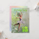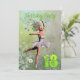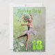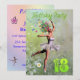 Un hermoso hada floral de bailarina bailando en una invitación de cumpleaños. La bailarina lleva un tutu blanco y tiene rastros de flores que provienen de su pelo. Ella está bailando a través de un prado lleno de margaritas.