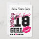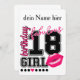 Tarjeta de invitación a 18. Cumpleaños personalisierbar. Pink Kiss college Style número.