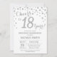 Invitación de cumpleaños 18 con fondo de diamante Purpurina plateado. Confetti plateado. Cumpleaños de adultos. Cumpleaños de hombres o mujeres. Para más personalización, haga clic en el botón "Personalizar" y utilice nuestra herramienta de diseño para modificar esta plantilla.