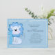 1.ª invitación a la Fiesta del León de Cumpleaños con un león azul con el número 1. Añade los detalles de tu fiesta para la invitación perfecta para el primer cumpleaños.