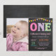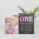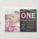 Invitación de cumpleaños con foto de personalizado. Invitación al primer cumpleaños del chica.Celebrar una fiesta de cumpleaños. Rosa, Púrpura, Naranja, Amarillo, Verde, Azul, Verde azulado, Aqua. Rayas. Fondo del tablero. Para una mayor personalización, haga clic en el botón "Personalizar" y utilice nuestra herramienta de diseño para modificar esta plantilla.