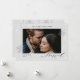 Celebra tu primera Navidad casada con esta impresionante tarjeta de vacaciones de fotos modernas de Navidades casados con espárragos blancos. Con un efecto diamante de imitación falso que añade un toque de brillo a los delicados copos de nieve, esta carta capta la magia de la temporada. El fondo está diseñado con una textura de Relieve metalizado blanco aplastado, añadiendo un toque festivo y llamativo, al mismo tiempo que se trata de un falso efecto digital. La combinación de colores blanco y negro le da un aspecto atemporal y elegante, lo que lo convierte en la forma perfecta de compartir su alegría y amor con amigos y familia durante las vacaciones. Personalízalo con tu foto favorita para crear un lindo conservador que apreciarás en los años venideros.