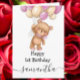 1.ᵉʳ cumpleaños globo rosa tarjeta de chica de peluche dulce bebé teddy tarjeta de bebé personalizada para una niña pequeña. Haga clic en el botón "Personalizar it!" para cambiar el tamaño del texto, el color del texto, el estilo del tipo de letra y más!