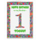 Una tarjeta de cumpleaños para un Hermano de un año, con un número y borde brillantes y con estampados burbujeantes. Puede cambiar el mensaje interno si lo desea.