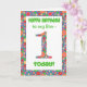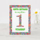 Una tarjeta de cumpleaños para un hijo de un año, con un número y borde brillantes y con estampados burbujeantes. Puede cambiar el mensaje interno si lo desea.