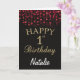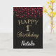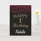 1.ª Tarjeta Purpurina de oro negro y rojo con nombre personalizado. Para una mayor personalización, haga clic en el botón "Personalizar" y utilice nuestra herramienta de diseño para modificar esta plantilla.