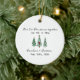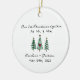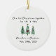 Los minimalistas árboles de Navidad adornan un adorno dulce y personalizado para la primera Navidad de la pareja junto con la fecha boda.