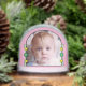 ¡Celebremos a los mágicos primeros Navidades con este encantador Globe de la nieve de la Cúpula! Añade tu foto favorita al frente y personaliza la parte posterior con un nombre y el año. Con estrellas amarillas y colores rosados y verdes festivos. Es un dulce toque que captura la alegría de las vacaciones y el gran hito del bebé. Perfecto para los regalos. Fotografía personalizado de la nieve, el primer regalo de Navidad del bebé, y decoración personalizada de las vacaciones - todo en un diseño adorable.