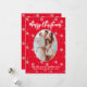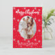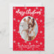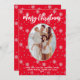 Moderna y divertida tarjeta de Navidades fotográficos con diseño de copos de nieve sobre fondo rojo con tipografía artística blanca con Feliz Navidad.