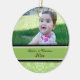 El 1r navidad del bebé adorna personalizable con sus propias fotos del bebé en el verde elegante, modelo floral clásico blanco y negro del damasco. Un regalo memorable para cualquier nueva mamá estas vacaciones.
