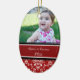 El 1r navidad del bebé adorna personalizable con sus propias fotos del bebé en modelo floral clásico rojo y blanco elegante del damasco. Un regalo memorable para cualquier nueva mamá estas vacaciones.