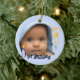 1r ornamento del recuerdo del cumpleaños del bebé que para requisitos particulares usted puede modificar fácilmente con la foto del bebé y añade su propio texto a la parte posterior. Es grande como 1r regalo de cumpleaños y será un recuerdo del nacimiento y del 1r birhday del bebé por próximos años.