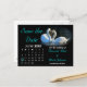 Anuncios de tarjeta postal "Save the Date", o recordatorios, para los recién casados novios. El corazón azul del amor en el calendario se puede mover a la fecha del día de la boda de la feliz pareja en cualquier mes de 2010. Debajo de la capa de color negro de fondo están los meses restantes de 2010. Elija su mes y muévalo encima del fondo negro y la capa de la imagen de los cisnes. Elimine las capas de los meses no deseados. Mueva el texto y los elementos alrededor según sea necesario, también. Inserte su propia foto de la pareja amorosa donde está la imagen actual del cisne. Si se desean los cisnes, también están disponibles sellos postales coincidentes, tarjetas de felicitación, imanes, así como pegatinas, etc.
