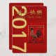 Tarjeta de invitación china de Año Nuevo 2017 (2) con año de personalizable (frontal) = grabado en relieve digital y efecto esmaltado para este diseño de Rooster en negro y oro sobre fondo rojo de "seda" con un sencillo marco dorado. Grabado dorado con sombra (no personalizable) y símbolo rojo metalizado de Rooster. Tarjeta de invitación al personalizable para el Año Nuevo Chino 2017. No olviden toda la colección y productos similares: tarjeta de felicitación china de Año Nuevo, postal, postal, postal, pegatina y más...