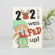 Cute tarjetas de felicitación de vacaciones 2021 con elfos enojados. Tanto los cuadros de texto de bienvenida como de firma en la parte posterior son de estilo de plantilla y se pueden personalizar fácilmente