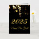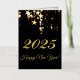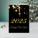 2025,Feliz año nuevo!Estrellas de oro y fondo negro postal