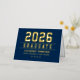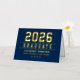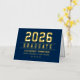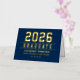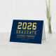 Elegante y moderno Relieve metalizado de oro personalizado graduación gracias nota las tarjetas pueden ser personalizadas con el nombre del graduado y la escuela. Se puede modificar el color de fondo azul marino. Personalizar para agregar un mensaje de agradecimiento al personalizado o escribir una nota manuscrita dentro de la tarjeta.