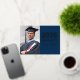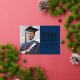 Elegante y moderno Relieve metalizado de oro personalizado graduación gracias nota las tarjetas se pueden personalizar con la foto del graduado, el nombre y la escuela. Se puede modificar el color de fondo azul marino. Personalizar para agregar un mensaje de agradecimiento al personalizado o escribir una nota manuscrita dentro de la tarjeta.